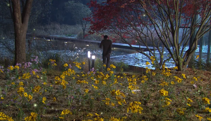 ஆனால் அந்த காட்சி அத்துடன் முடிந்துவிடவில்லை; அவன் சென்ற பிறகும் அது தொடர்கிறது. அவன் அங்கே ஒரு பெரிய பூ இதழ்களின் குவியலை விட்டுச் சென்றிருக்கிறான். அங்கே, சிறிய மின்மினிப் பூச்சிகள் அந்தப் பூக்களைச் சுற்றிப் பறந்து, தங்கள் மாயாஜாலத்தைக் காட்டுகின்றன. அந்தப் பூக்களின் இதழ்களை எல்லாம் இழந்த மொட்டு பகுதியில் இருந்து, ஒருவித ஒளியுடன் கூடிய பிரகாசத்துடன் ஒரு கடைசி இதழ் மட்டும் மாயாஜாலமாக மீண்டும் வளர்கிறது. ஆஹா, அது எவ்வளவு அழகாக இருக்கிறது!